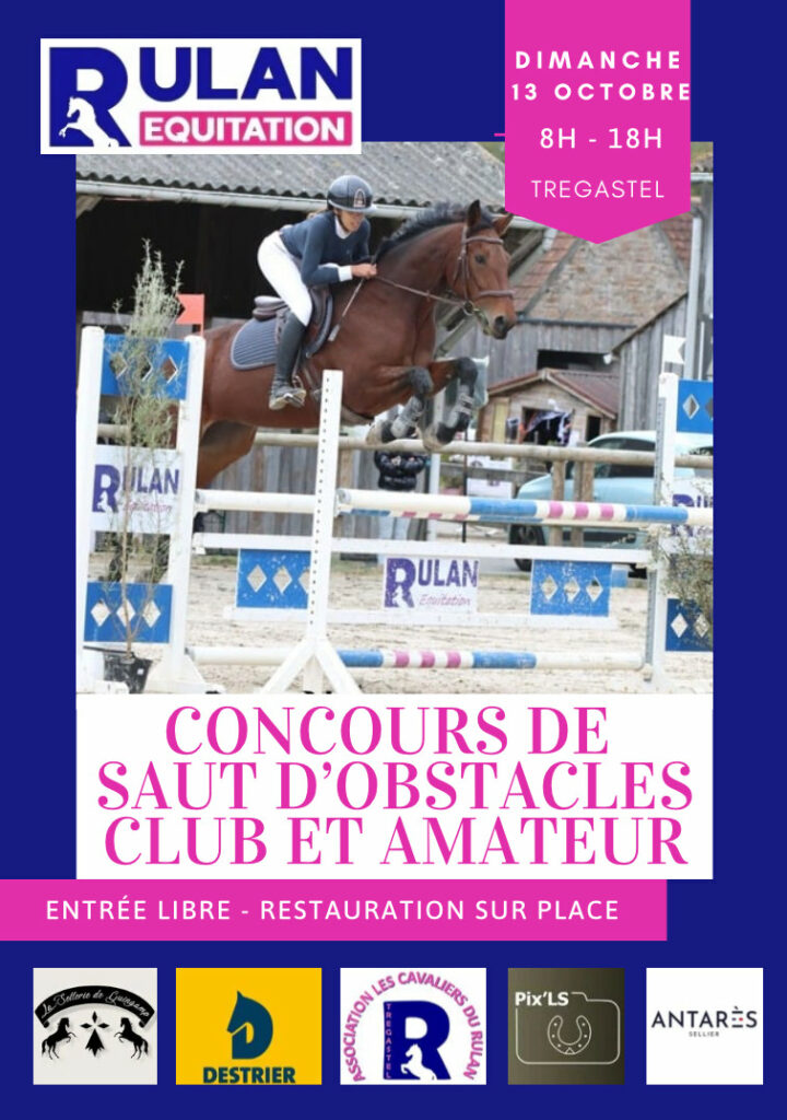Le Rulan vous donne rendez-vous le dimanche 13 octobre de 8h à 18h à Trégastel pour le concours de saut d’obstacles Club et Amateur.